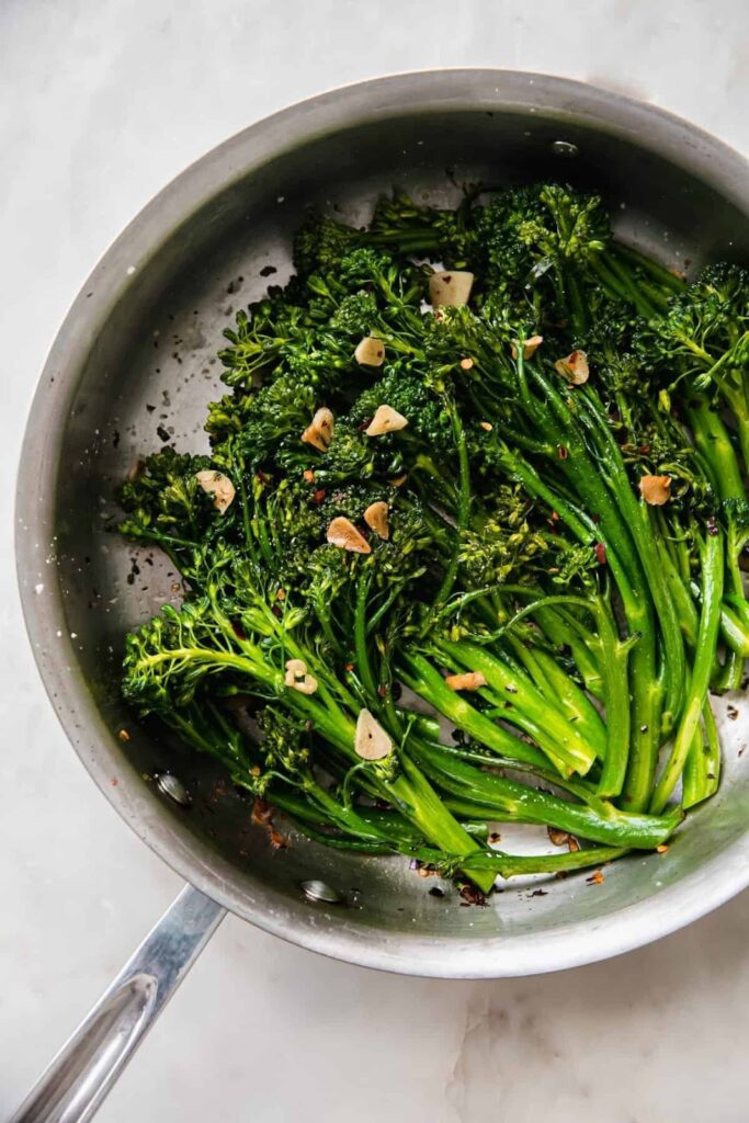 Heat olive oil in a pan. Add crocolini and cook for three to five minutes. Add garlic or lemon if desired. This method keeps crocolini tender with slight crispness.